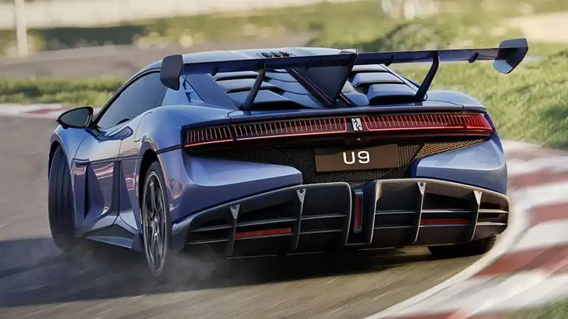 نمای عقب آن نیز مثل چهره U9، شمایلی متفاوت با ابرخودروهای معمول دارد. به جای شیشه عقب، دو ردیف دریچه پله‌ ای هوا قرار دارد و در میان آنها، یک باله کوسه ‌ای شفاف و بزرگ نصب شده است. چراغ ‌های عقب شامل یک ردیف پهن از پیکسل‌ های قرمز می ‌باشد که عرض خودرو را پوشش داده و یک قطعه فیبرکربن بین چراغ ‌ها و دیفیوزر بزرگ عقب فاصله انداخته است.
