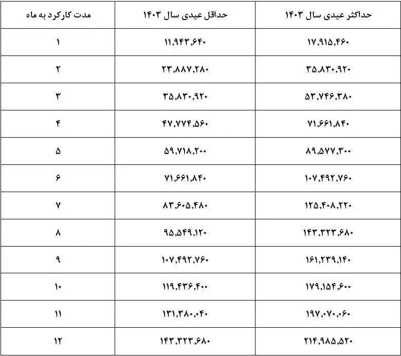 حداقل عیدی سال ۱۴۰۳