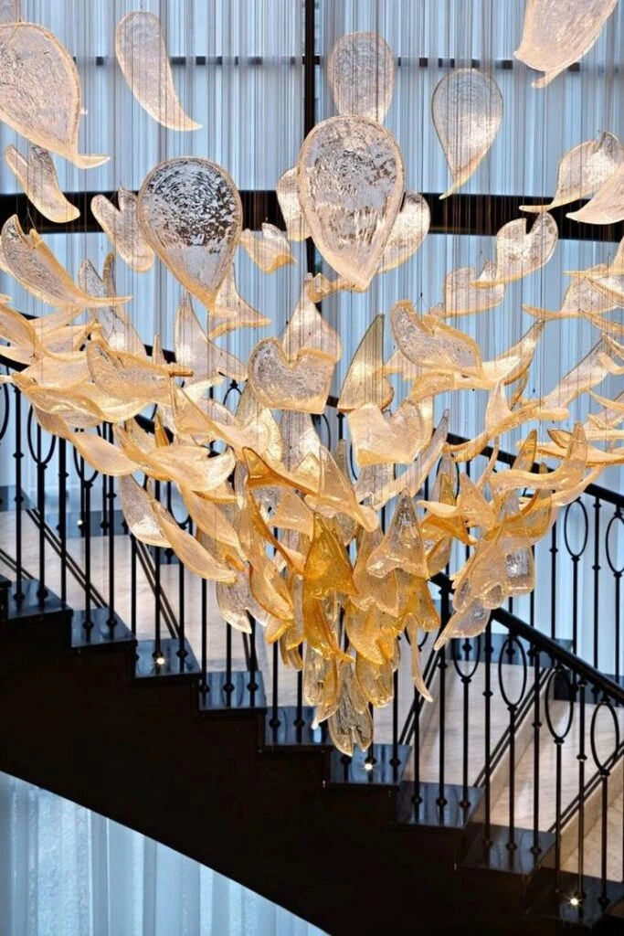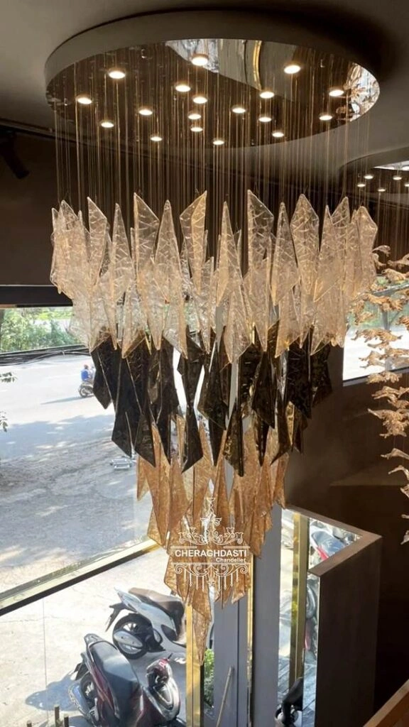لوستر لابی: یکی دیگر از کاربردهای این نوع لوسترها استفاده در سالن‌های لابی برج‌ها و ساختمان‌هان شخصی و اداری بزرگ است که به زیبایی و شکوه سازه میافزاید.