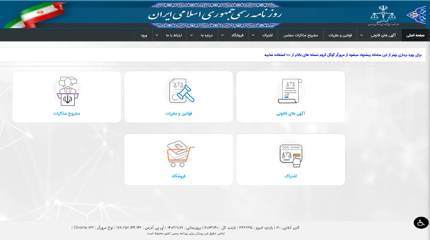 روزنامه رسمی معمولاً آگهیهای مربوط به ثبت و تغییرات شرکتها و مؤسسات را منتشر میکند. با مراجعه به سایت این روزنامه، میتوان اطلاعات مرتبط با یک شرکت، از جمله وضعیت ثبتی و تغییرات آن را بررسی کرد و از قانونی بودن فعالیت آن اطمینان یافت.