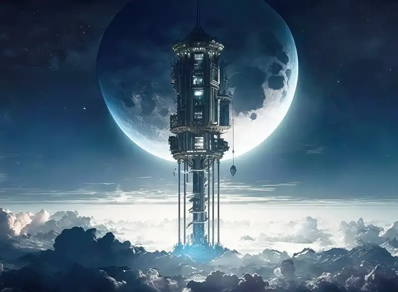 آسانسور همانند یک طناب و کابلی بوده که از زمین به سمت فضا کشیده شده است. این آسانسور می‌تواند افراد را از زمین به کره مریخ، ماه و… ببرد. با توجه به مقصد نهایی مدت زمانی که برای رسیدن به فضا از طریق آسانسور نیاز بوده فرق می‌کند. در صورتی که مقصد ژئوسنکرون باشد به مدت پنج روز زمان نیاز است.