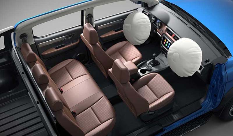 صندلیهای ماشین عرض کمی دارند و بنابراین ممکن است برای افراد چاق، نسبتاً نامطلوب باشند، اما به جای آن، جای کافی برای پا و سر پنج نفر در نظر گرفته شده است و دیگری اینکه ترتیب صندلیها جهت عبور راحتتر از پیچها را فراهم کرده است. اما ای کاش جنس صندلیها نرمتر بودهاند تا کمتر خشکی ذاتی یک پیکاپ آفرودر در داخل کابین احساس شود. همچنین، زیر صندلی عقب یک محفظه برای جعبه ابزار و کپسول آتشنشانی وجود دارد که بسیار جالب است.