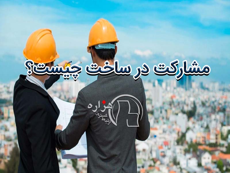 مشارکت در ساخت همانطور که از اسم آن مشخص است به پروژه ای گفته میشود که در کنار همکاری چندین نفر به اتمام میرسد. در این مشارکت هر کدام از اعضای گروه با توجه به درصد سهی که داشته مبلغ خاصی را دریافت میکند. برای مثال در پروژههایی که منجر به ساخت آپارتمان میشود هر کدام اعضا تعداد واحد مشخصی را تحویل میگیرند.